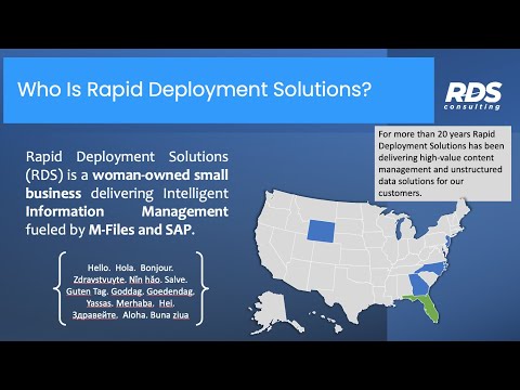 Rapid Deployment Solutions (RDS) is a woman-owned small business delivering professional services fueled by M-Files, OpenText, SAP, and Nipendo.